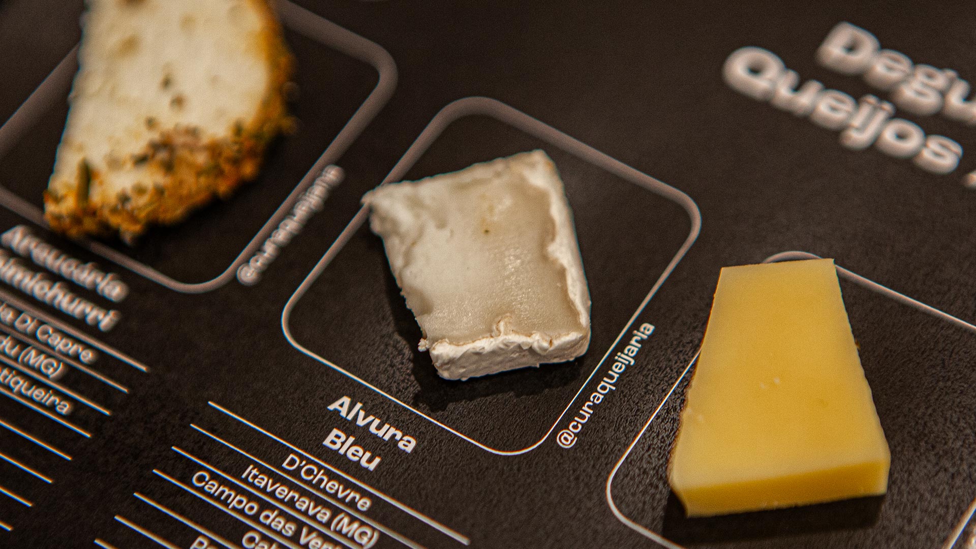 Entre as criações mais emblemáticas da D’Chèvre está o elegante e surpreendente Alvura Bleu, um queijo de cabra autoral que combina o visual e a suavidade de um queijo de casca florida com a complexidade e o caráter do mofo azul. É uma peça híbrida, resultado da aplicação do Penicillium candidum na superfície — típico dos bries e camemberts — e do Penicillium roqueforti em seu interior, o mesmo fungo presente em queijos como o roquefort e o gorgonzola.