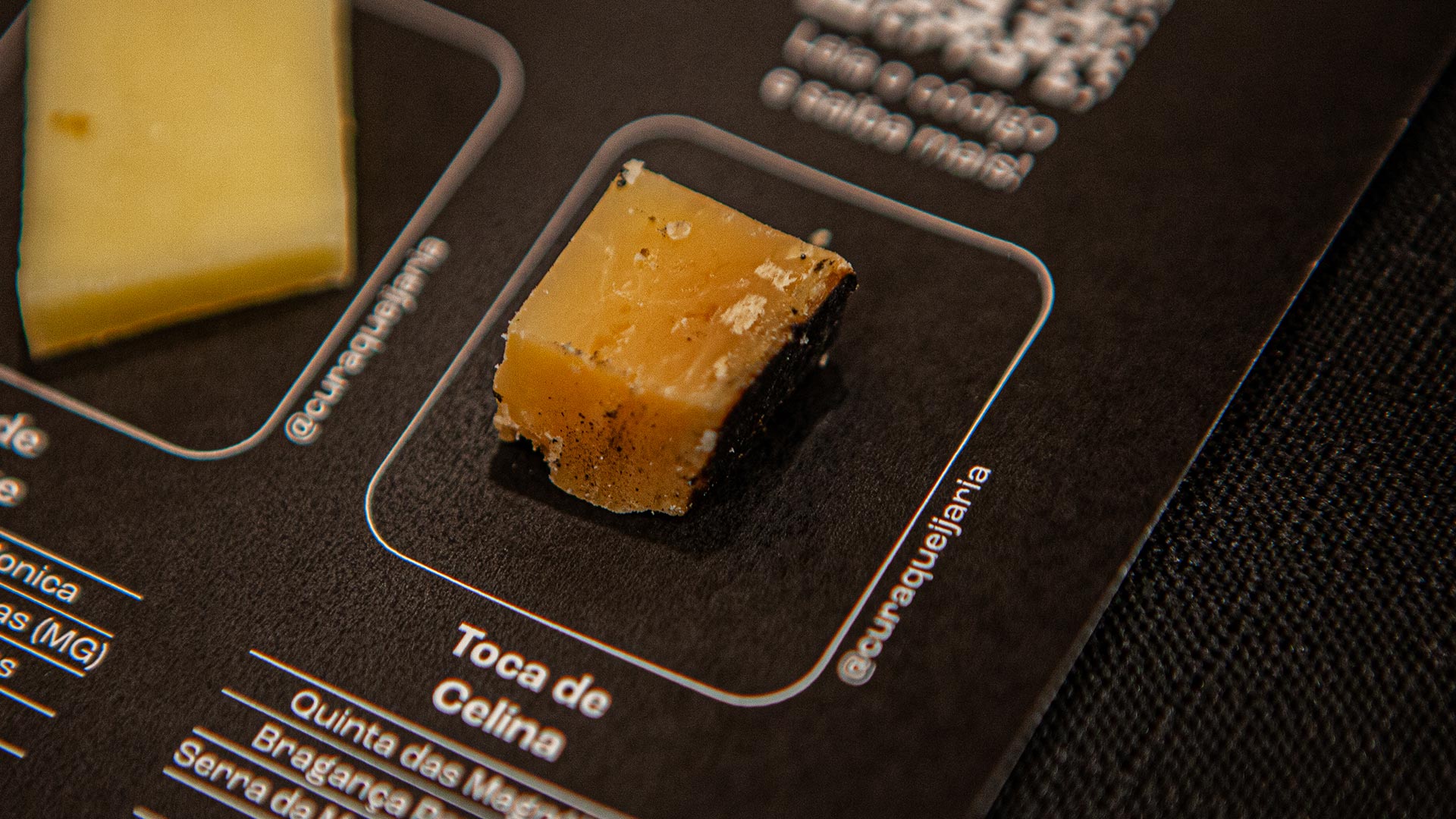 Foi com esse olhar cuidadoso que nasceu o Toca de Celina, um dos queijos mais emblemáticos da casa. Batizado em homenagem à porca Celina, ele apresenta uma massa de coloração dourada clara e textura quebradiça. No aroma, destaca-se um potente perfume frutado. No sabor, uma combinação intensa, mas equilibrada entre dulçor inicial, acidez sutil e picância, exaltando, por fim, bastante umami. Sua casca recebe uma fina camada de carvão ativado que favorece o desenvolvimento de mofo branco, criando um visual bruto e sofisticado e um sabor fresco e limpo.